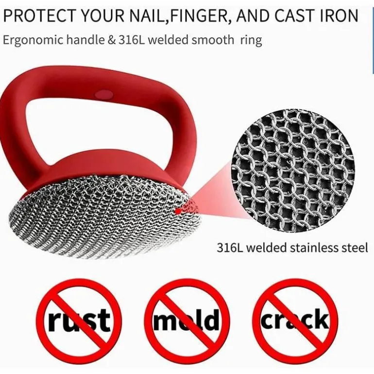 Der Deep Cleaning Iron Scrub ist ein unverzichtbares Werkzeug für die Pflege Ihres Gusseisenkochgeschirrs, einschließlich Pfannen, Töpfen und Grillplatten. Ausgestattet mit einem stabilen Griff und einer verlöteten, runden Kettengeflechtbürste verfügt dieser Reiniger über kleine, feine Kettenglieder, die selbst hartnäckigsten Schmutz und Ablagerungen beseitigen und gleichzeitig dafür sorgen, dass die Oberfläche Ihres Gusseisens kratzfrei bleibt.