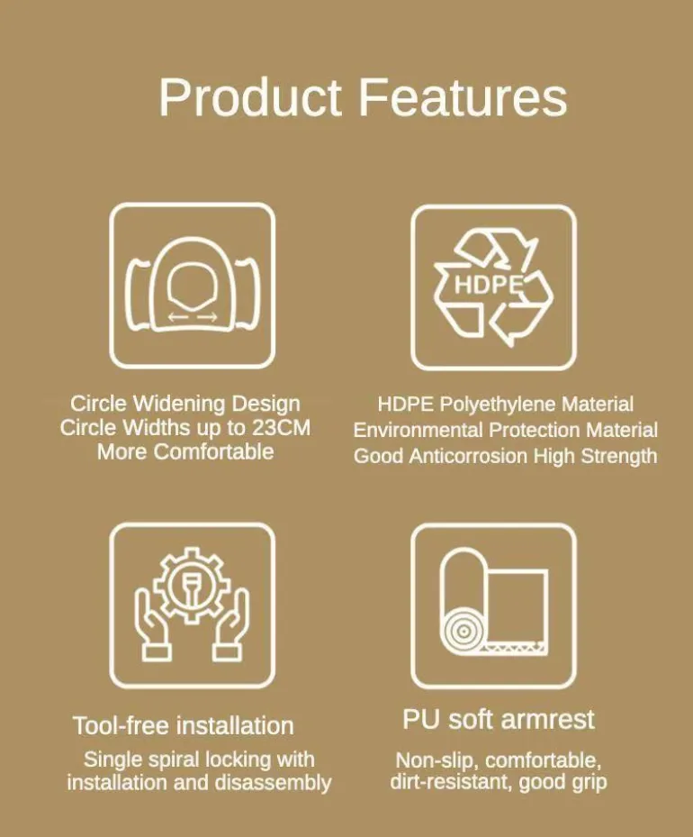 Dieser aus hochwertigen Materialien gefertigte Toilettensitzlifter ist druck- und sturzsicher und gewährleistet so eine lange Lebensdauer im täglichen Gebrauch. Die speziell entwickelten Armlehnen sorgen für zusätzliche Stabilität und erleichtern älteren Nutzern und Schwangeren das sichere Hinsetzen und Aufstehen. Der breite Innenring bietet eine bequeme Sitzfläche und ist für verschiedene Körperformen und Vorlieben geeignet.