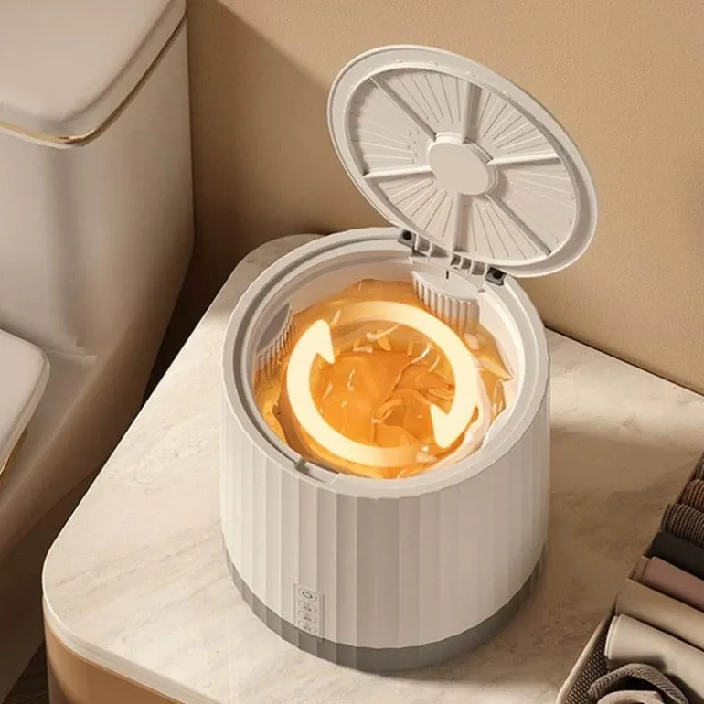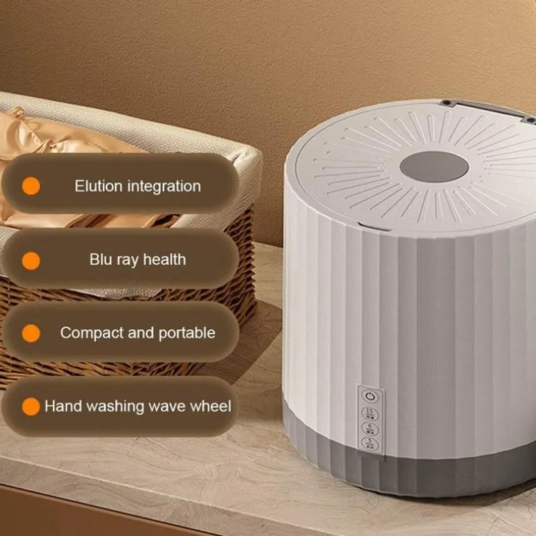 Erleben Sie die Leichtigkeit und Effizienz der tragbaren 4-Liter-Mini-Waschmaschine mit rotierender Turbine – die ideale kompakte Lösung für kleine Wäschemengen. Dank ihres einzigartigen rotierenden Turbinenmechanismus reinigt diese Waschmaschine Ihre wichtigsten Wäschestücke wie Socken, Unterwäsche und T-Shirts gründlich und effektiv – und das alles mit einem Fassungsvermögen von 4 Litern.