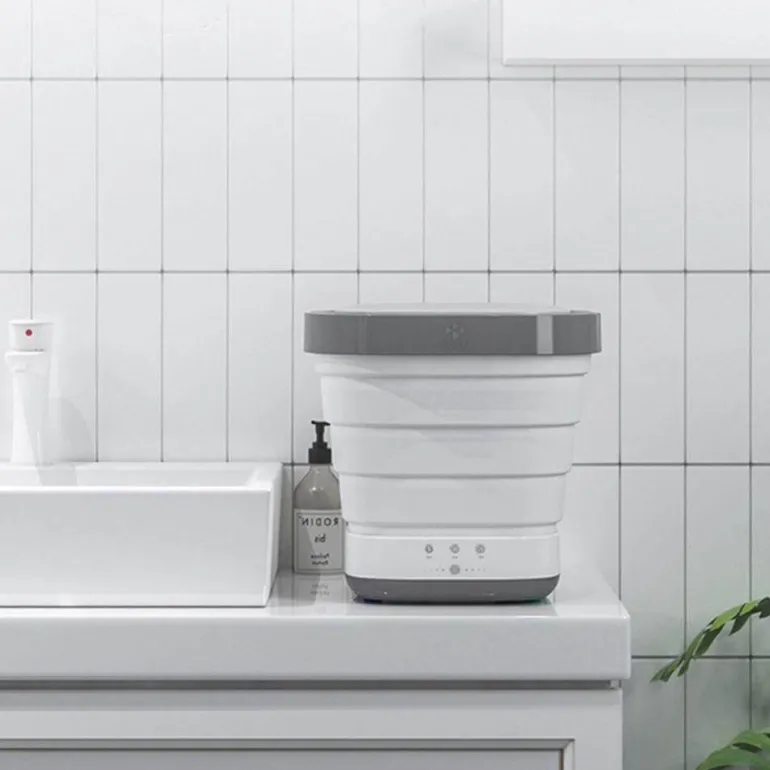 Erleben Sie den Komfort des Wäschewaschens unterwegs mit der tragbaren, faltbaren Mini-Waschmaschine – einer kompakten und innovativen Lösung für Ihre Waschbedürfnisse. Diese leichte Waschmaschine passt problemlos in Ihr Gepäck und ist somit die ideale Wahl für Reisende, Camper und Studenten, die möglicherweise keinen Zugang zu herkömmlichen Waschmaschinen haben.