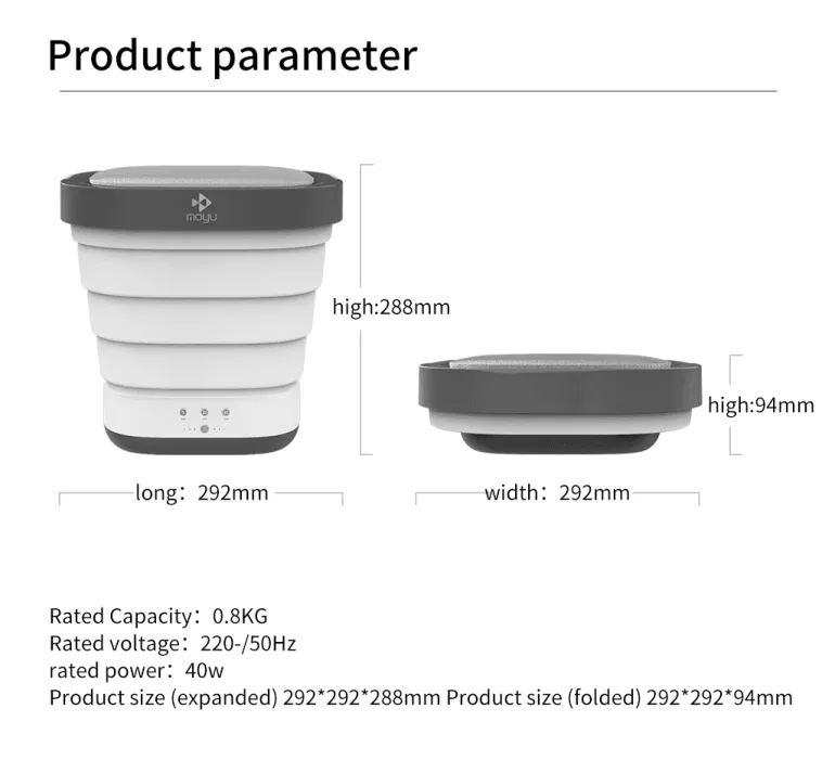 Die Bedienung der tragbaren, faltbaren Mini-Waschmaschine ist kinderleicht: Einfach Wasser und Waschmittel hinzufügen und schon kann es losgehen. Zu ihren Funktionen gehören die Hochtemperatur-Einweichfunktion für effektives Reinigen, das Design ermöglicht einfaches Zusammenfalten und Transportieren und der minimale Energiebedarf – nur 0,005 Grad Leistung pro 10-minütigem Waschgang. Bemerkenswerterweise verbraucht jeder Waschgang nur 1/15 des Wasserverbrauchs einer herkömmlichen Waschmaschine, was sie zu einer umweltfreundlichen Option macht.