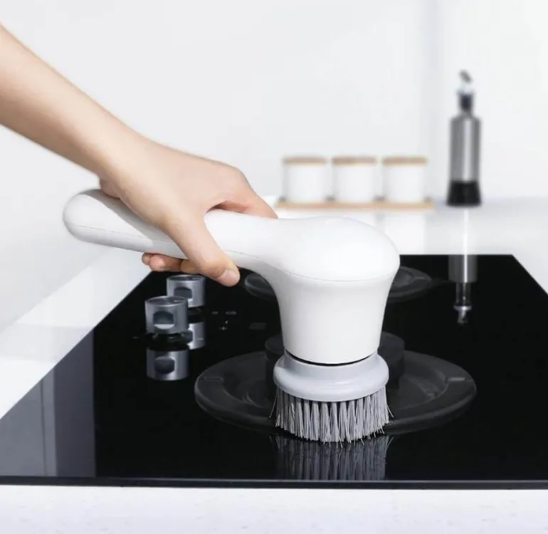 Dieses praktische Gerät bietet zwei verschiedene Reinigungsmodi: Einmal drücken für die Standardreinigung und erneut drücken, um den Hochdrehmomentmodus für hartnäckigere Flecken zu aktivieren. Es wird mit zwei austauschbaren Bürstenköpfen geliefert: einer kurzen Bürste, ideal für die Reinigung großer Flächen wie Böden und Wände, und einem Reinigungstuch speziell für fettige Oberflächen wie Küchengeräte und Dunstabzugshauben. Die langlebigen Nylonborsten sind verschleißfest, und der abnehmbare Bürstenkopf ermöglicht einen einfachen Austausch bei Bedarf.