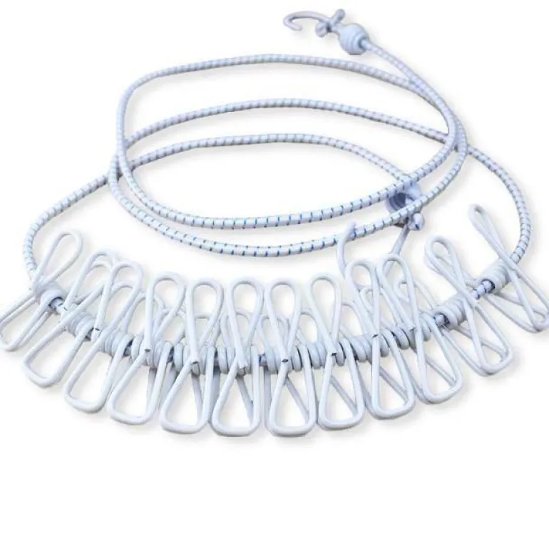 * Dank des einzigartigen Designs mit Federklammern ist dieses Seil sowohl im Innen- als auch im Außenbereich praktisch zu verwenden.