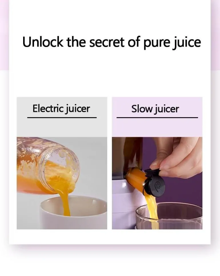 Mit einer beeindruckenden Saftausbeute von 95 % extrahiert dieser Mixer effizient jeden Tropfen des Guten aus Ihren Zutaten, sodass wiederholtes Auspressen entfällt. Dank des antiken Schneckendruckverfahrens werden ballaststoffreiche Früchte und Gemüse mühelos und ohne Verklemmen verarbeitet, sodass Sie schnell und einfach entsaften können.