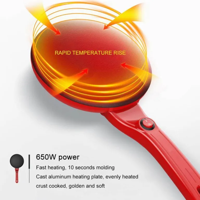 Die 600-W-Leistung und die benutzerfreundliche Ein-Knopf-Bedienung machen diesen elektrischen Pfannkuchenmaker zu einem unverzichtbaren Werkzeug für schnelles und effizientes Kochen. Genießen Sie frisch zubereitete Pfannkuchen und Crêpes mit minimalem Aufwand.