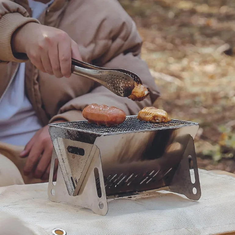 Erleben Sie entspanntes Kochen im Freien mit unserem tragbaren Holzkohlegrill, der speziell für Camping-Fans entwickelt wurde. Der Grill aus robustem Edelstahl ist hitzebeständig, kratzfest und rostfrei und hält so verschiedenen Wetterbedingungen stand, ohne sich zu verziehen. Seine robuste Konstruktion macht ihn zu einem zuverlässigen Begleiter für all Ihre Campingabenteuer.