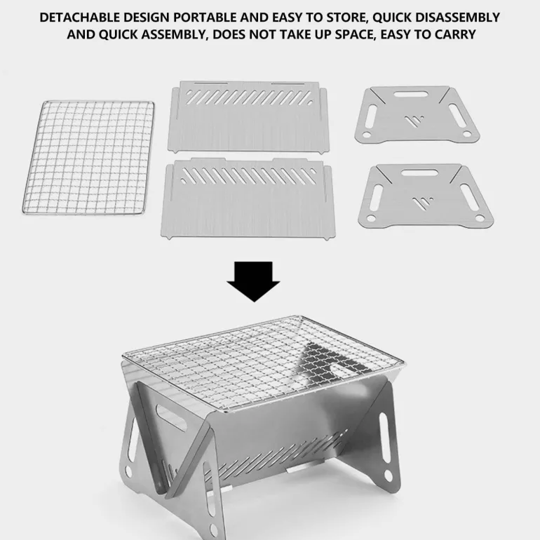 Dieser vielseitige Grill dient sowohl als Lagerfeuerrost als auch als Feuerstelle und eignet sich für zahlreiche Outdoor-Kochmethoden. Dank seines zusammenklappbaren Designs lässt er sich in wenigen Minuten auf- und abbauen und lässt sich einfach in der mitgelieferten Aufbewahrungstasche verstauen. Sie können nicht nur Holzkohle, sondern auch Äste und trockene Blätter als Brennstoff verwenden – praktische Optionen für Ihre Outdoor-Kochbedürfnisse.