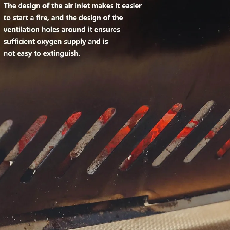Dieser kompakte und benutzerfreundliche Grill verfügt über umlaufende Lüftungsschlitze, die die Luftzirkulation verbessern, sodass Ihr Feuer hell brennt und Sie gleichzeitig ein angenehmes Kocherlebnis haben.