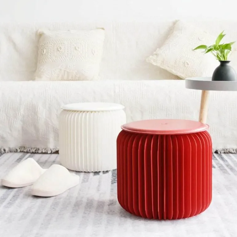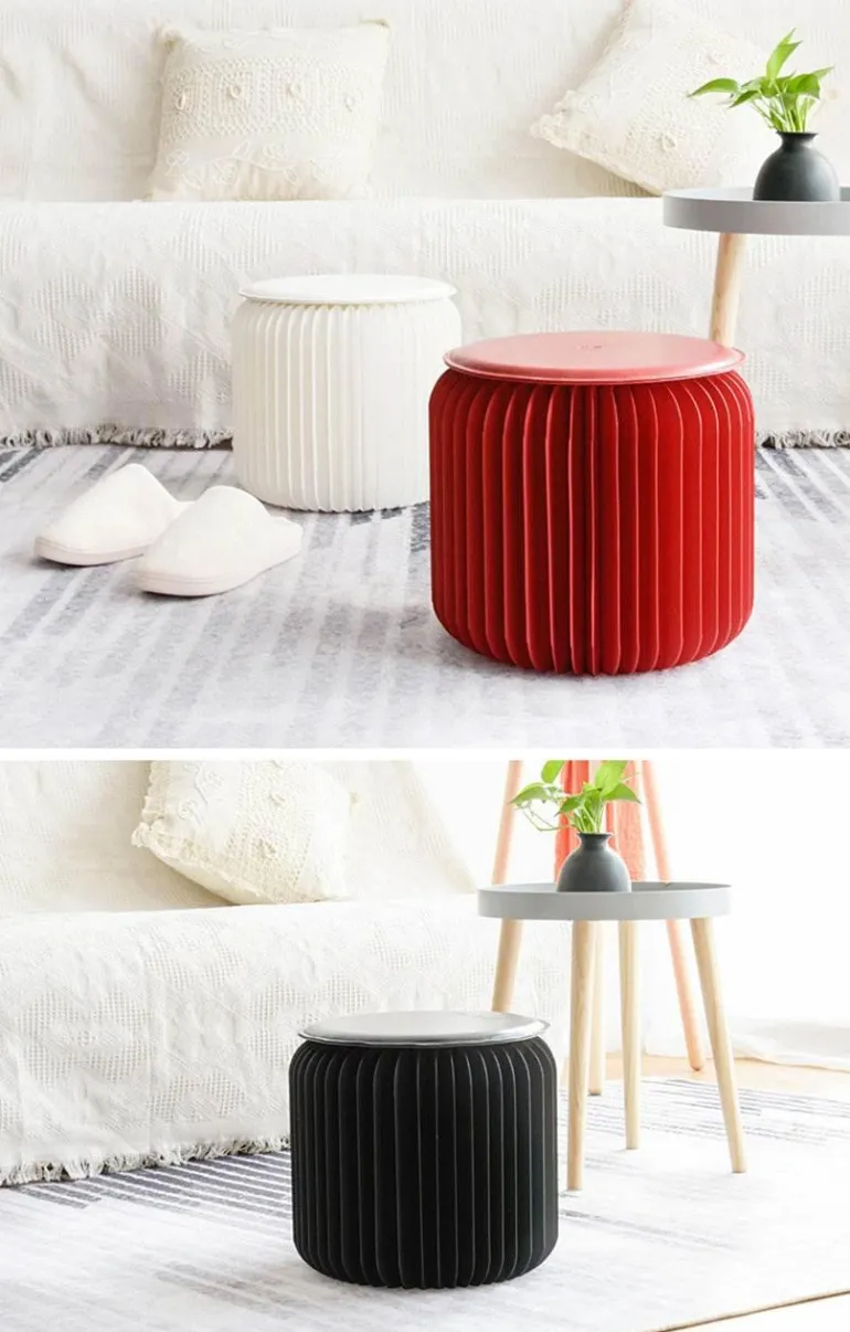 Diese Hocker aus strapazierfähigem Karton und Kraftpapier dienen nicht nur als funktionale Sitzgelegenheit, sondern verleihen Ihrem Wohnraum auch einen Hauch von Kreativität. Dank ihres einzigartigen Designs können sie auch als kleiner Tisch oder Couchtisch verwendet werden und fügen sich nahtlos in Ihre Einrichtung ein. Bei Nichtgebrauch können Sie sie bequem zusammenklappen und in einer Schublade verstauen – für Ordnung in Ihrem Zuhause.