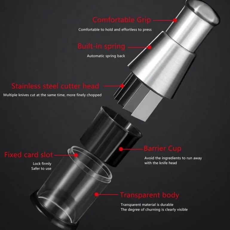 Erleben Sie mühelose Essenszubereitung mit diesem tragbaren Handzerkleinerer, der zum bequemen Schneiden von Obst und Gemüse entwickelt wurde. Mit seinen robusten Edelstahlklingen verarbeitet dieser Zerkleinerer selbst härtestes Obst und Gemüse effizient und macht die Essenszubereitung zum Kinderspiel. Der weiche Griff liegt nicht nur angenehm in der Hand, sondern sorgt auch für Sicherheit bei der Anwendung und sorgt jedes Mal für ein reibungsloses Schneideerlebnis.