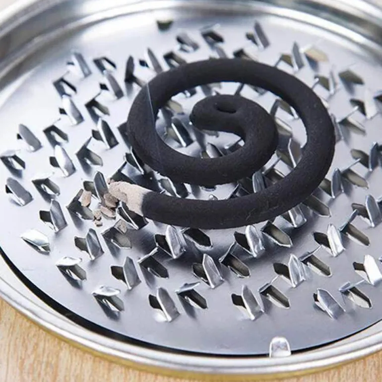 Die Edelstahlverzahnung am Halter bietet hervorragenden Halt für mückenabweisende Räucherstäbchenspiralen, während ein speziell gestaltetes Gitter in der Schale effektiv die Rußverbreitung verhindert. Dieses durchdachte Design sorgt für Ordnung und Sie profitieren von einem effektiven Insektenschutz. Zusätzlich verhindert die Abdeckung die versehentliche Entzündung von Gegenständen in der Nähe und erhöht so die Sicherheit für Sie, Ihre Familie und Freunde.
