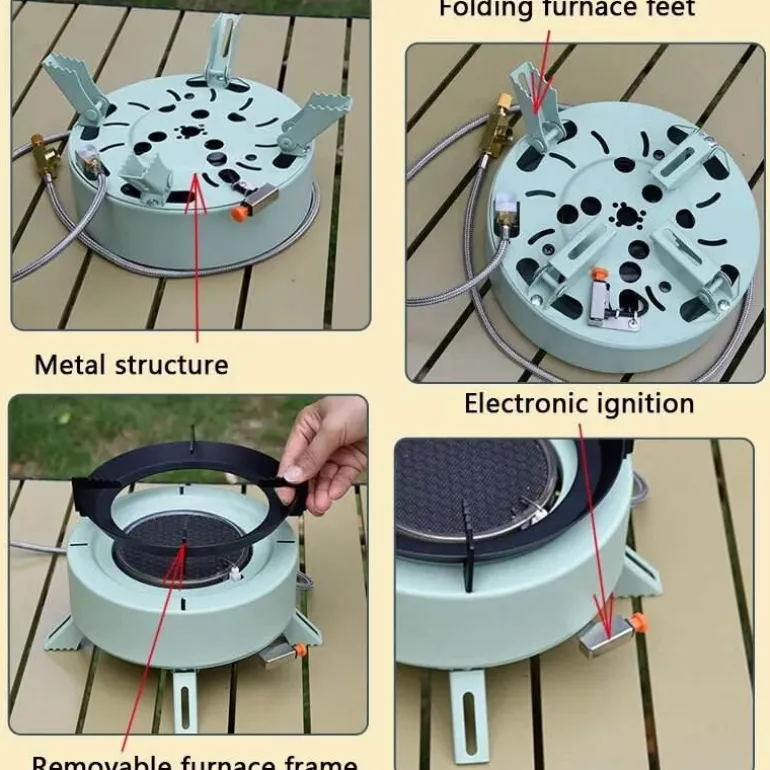 Erleben Sie die Kombination aus Komfort und Leistung mit diesem tragbaren Kocher. Dieser tragbare Kocher wurde für alle entwickelt, die gerne unterwegs kochen, und ist ein Muss für Campingausflüge, Picknicks und jedes Outdoor-Abenteuer. Er ist kompakt und leicht und stellt sicher, dass er Sie auf Reisen nicht belastet.