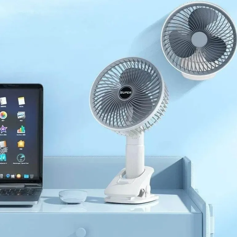 Bleiben Sie an warmen Tagen kühl mit unserem kompakten, per USB wiederaufladbaren Clip-On-Ventilator, der für mühelosen Komfort entwickelt wurde. Dieser kleine, aber effiziente Ventilator lässt sich einfach an Schreibtischen, Tischen oder jeder geeigneten Oberfläche befestigen und sorgt für eine erfrischende Brise genau dort, wo Sie sie brauchen. Dank der USB-Aufladefunktion ist dieser Ventilator der ideale Begleiter für Zuhause, Büro oder unterwegs und sorgt für Komfort, egal wo Sie sind. Der verstellbare Ventilatorkopf ermöglicht es Ihnen, den Luftstrom in den gewünschten Winkel zu lenken und sorgt so den ganzen Tag über für angenehme Erfrischung.