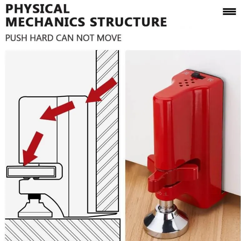 Erhöhen Sie Ihre Reisesicherheit mit unserem tragbaren Türstopper-Alarm. Dieses kompakte und leichte Sicherheitsgerät warnt Sie, wenn jemand versucht, Ihre Hotelzimmertür zu öffnen. Dieses praktische Tool ist unverzichtbar für Berufsreisende und ermöglicht es Ihnen, sich auf Ihre Arbeit zu konzentrieren und gleichzeitig für Ihre Sicherheit zu sorgen.