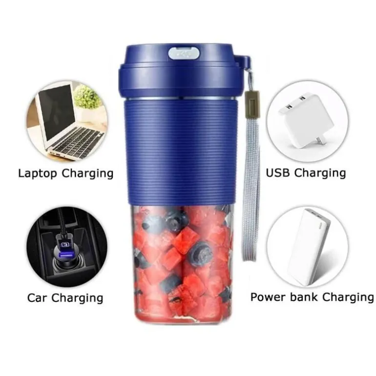Dieser Mixer ist über USB wiederaufladbar und mit jedem Gerät mit USB-Anschluss kompatibel. Schließen Sie ihn einfach an Ihren Autoadapter, Ihr Netzteil oder Ihre Powerbank an. Voll aufgeladen kann der tragbare Mixer bis zu 10 Tassen Saft zubereiten und ist somit ideal für unterwegs.