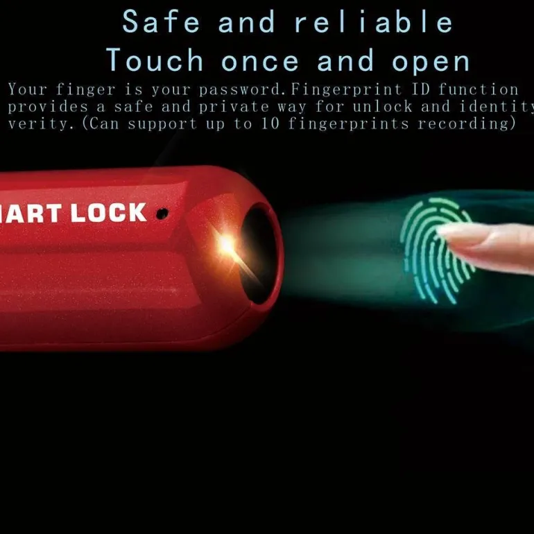 Wir präsentieren eine zuverlässige und praktische Lösung für Ihre Sicherheitsanforderungen – das tragbare Mini-Diebstahlschutzschloss. Dieses kompakte Gerät nutzt fortschrittliche Fingerabdrucktechnologie und ermöglicht so ein nahtloses, schlüsselloses Erlebnis. Der Zugang erfolgt ausschließlich über registrierte Fingerabdrücke.
