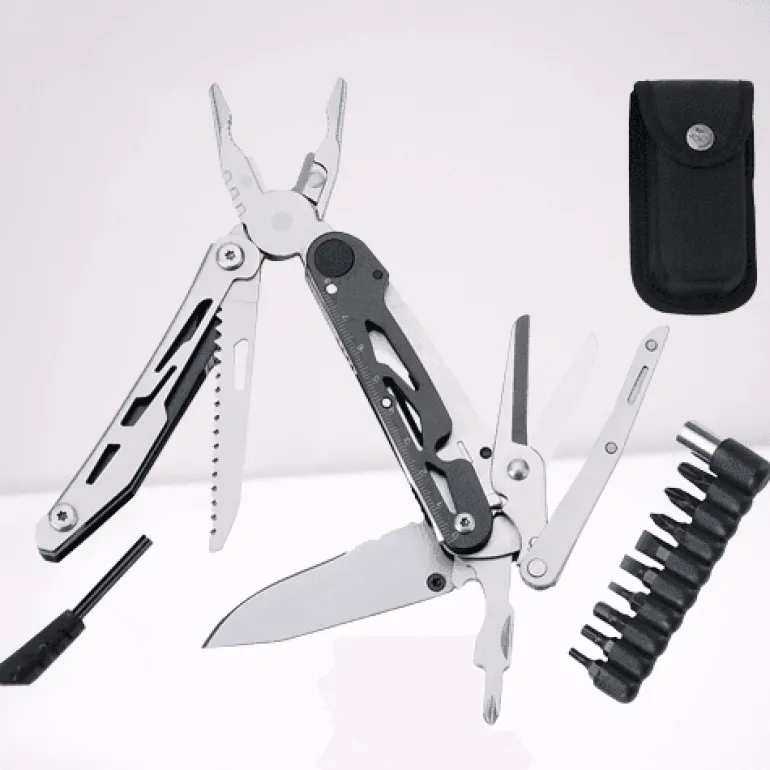 Das Travel Buddy Camping Pocket Notfallwerkzeug ist ein unverzichtbarer Begleiter für Ihre Camping- und Wanderabenteuer. Dieses kompakte Multifunktionswerkzeug im Taschenformat bietet Ihnen eine Vielzahl wichtiger Funktionen und sorgt dafür, dass Sie bei Ihren Erkundungstouren in der freien Natur für alle unvorhergesehenen Situationen gerüstet sind. Die robuste Edelstahlkonstruktion verspricht Langlebigkeit, während der gerade Griff einen komfortablen Halt bietet.