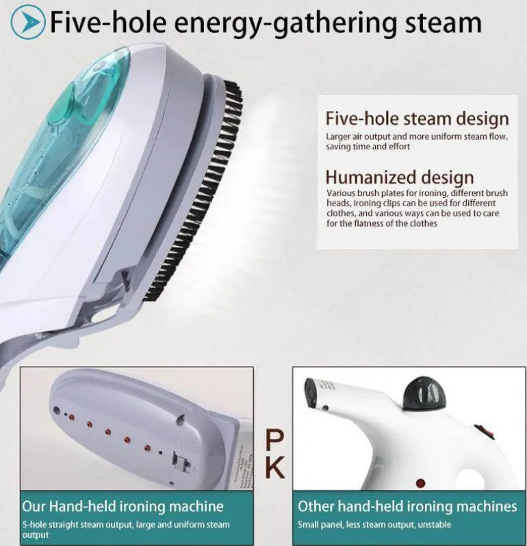 Entdecken Sie den Komfort eines leichten und tragbaren Dampfglätters, der sich perfekt für Geschäftsreisen und Urlaube eignet. Dieses kompakte Dampfbügeleisen ist für die mühelose Einhandbedienung konzipiert und entfernt mühelos Falten aus Ihrer Kleidung. Damit ist es eine unverzichtbare Ergänzung Ihrer Reiseutensilien.