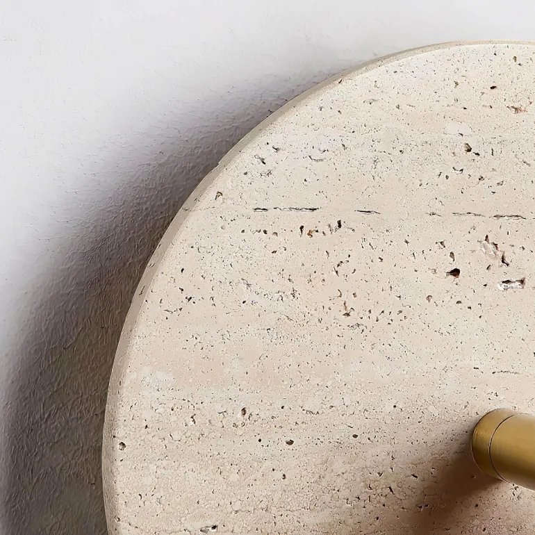Diese Wandleuchte aus hochwertigen Materialien ist auf Langlebigkeit und Langlebigkeit ausgelegt. Sie ist eine hervorragende Ergänzung für Wohnzimmer, Schlafzimmer oder Flure und bietet die perfekte Balance zwischen Stil und Funktionalität. Für alle, die dezente Eleganz schätzen, wertet die Silvia Travertin-Wandleuchte mit ihrem subtilen Charme das Ambiente Ihres Zuhauses auf.
