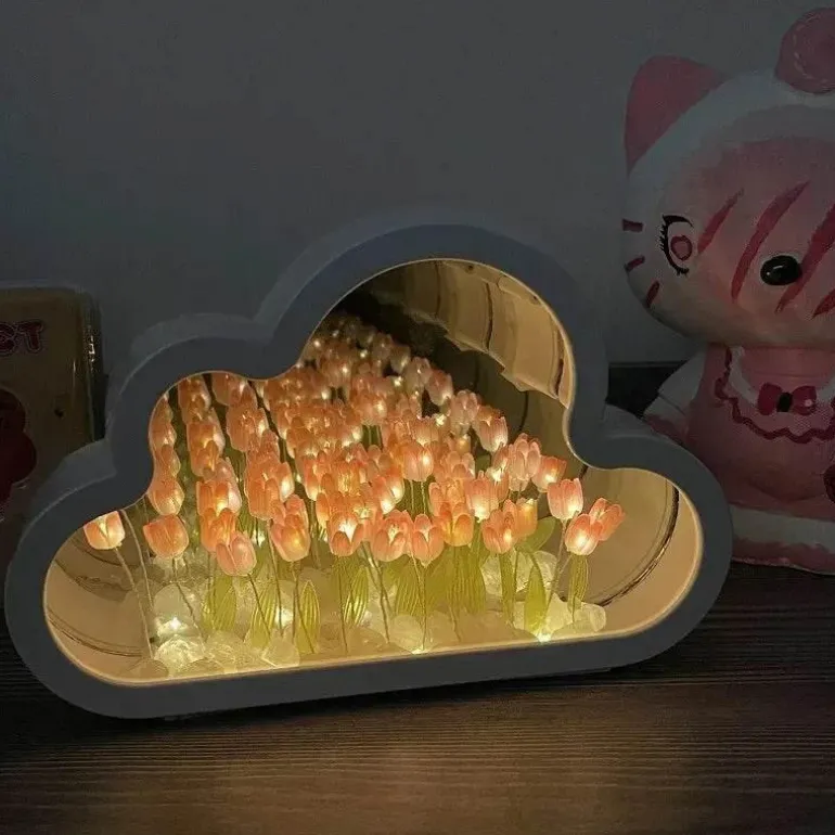 **Wie schneidet dieses Produkt im Vergleich zu anderen ab?** Anders als typische Nachtlichter mit schlichtem Design fällt diese Tulpenlampe durch ihre bezaubernde Blumenform und leuchtenden Farben auf und bietet eine einzigartige Mischung aus Funktionalität und Stil, die jede Inneneinrichtung aufwertet.