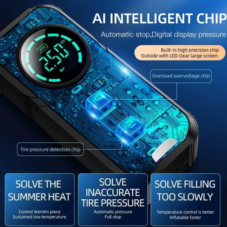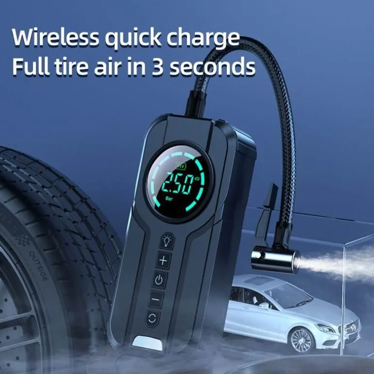 Das Paket enthält einen tragbaren Turbo Jet-Luftkompressor, der Ihnen jederzeit und überall zur Seite steht. Mit diesem unverzichtbaren Werkzeug können Sie Ihre Reifen bequem aufpumpen und Ihre Abenteuer reibungslos gestalten. Entdecken Sie praktische Lösungen für Ihr Zuhause bei Decor .