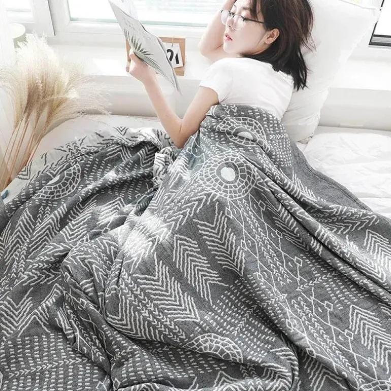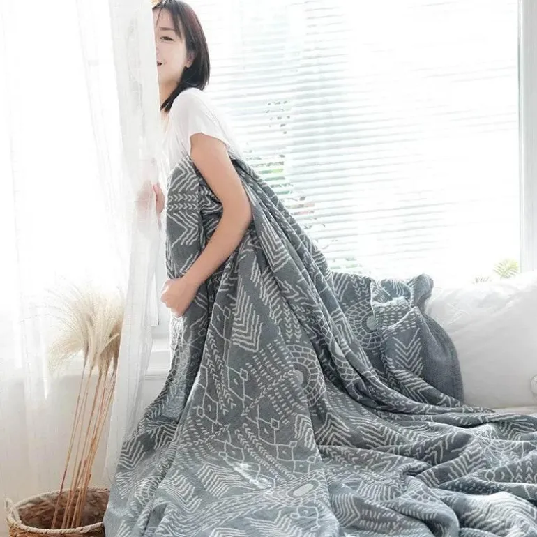 Genießen Sie den Komfort eines Hotelaufenthalts mit der Baumwollgaze-Überwurfdecke. Sie eignet sich perfekt für gemütliche Abende auf der Couch, wärmt bei kühlen Outdoor-Events oder ist ein liebevolles Geschenk für Freunde und Familie. Verschönern Sie Ihr Entspannungserlebnis mit diesem unverzichtbaren Accessoire, das zu jeder Jahreszeit passt.