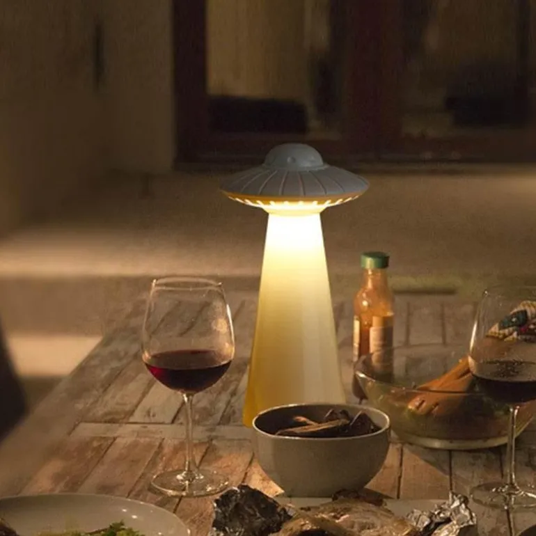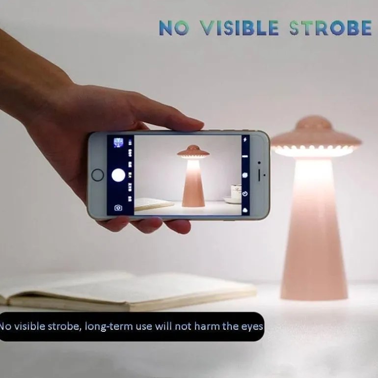 Beleuchten Sie Ihren Arbeitsplatz oder Ihre Leseecke mit dieser wiederaufladbaren LED-Schreibtischlampe im UFO-Stil. Sie ist ideal für alle, die gerne bis spät in die Nacht aktiv sind, ohne ihren Partner zu stören. Mit ihrem sanften Licht ist diese Lampe sowohl funktional als auch stilvoll und somit eine hervorragende Ergänzung für jeden Schreibtisch.