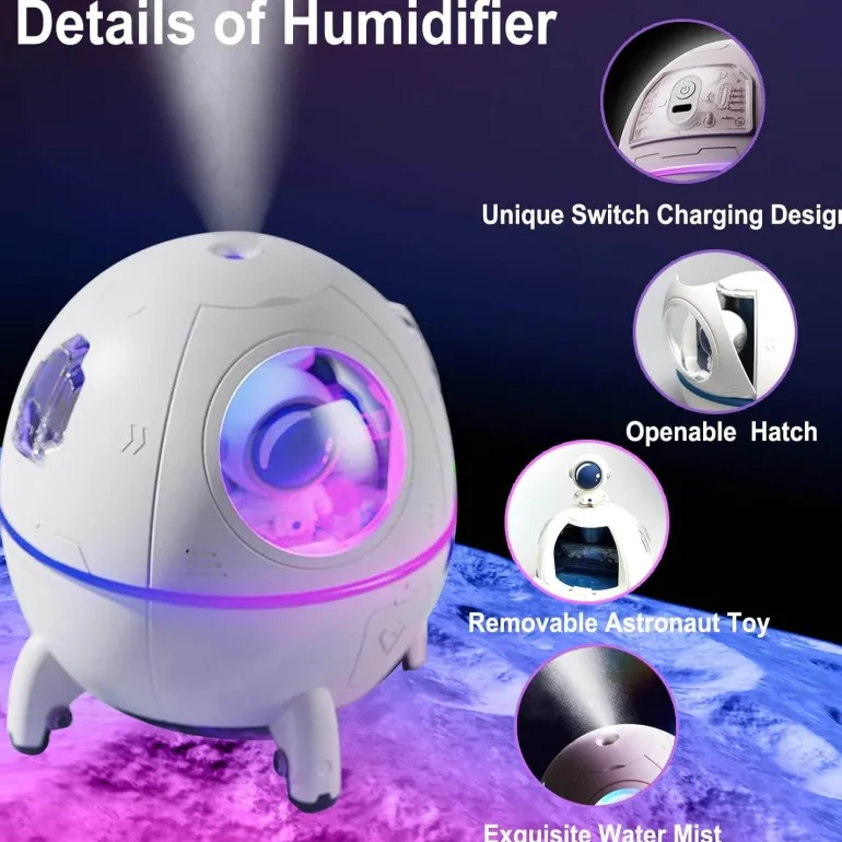 Tauchen Sie ein in ein kosmisches Erlebnis mit dem Universe Flow Ultraschall-Luftbefeuchter. Er hat die verspielte Form eines Raumschiffs und ist die ideale Ergänzung für jedes Zuhause oder Büro eines Weltraumbegeisterten. Dieser stilvolle Luftbefeuchter wertet nicht nur Ihre Einrichtung auf, sondern verbessert auch die Luftqualität und verleiht Ihrem persönlichen Umfeld eine praktische Note.