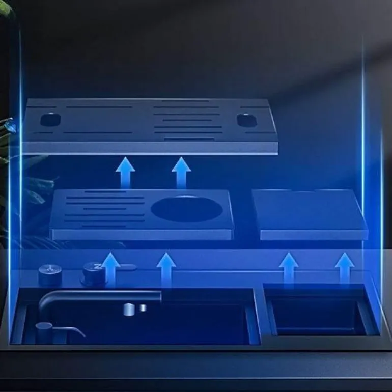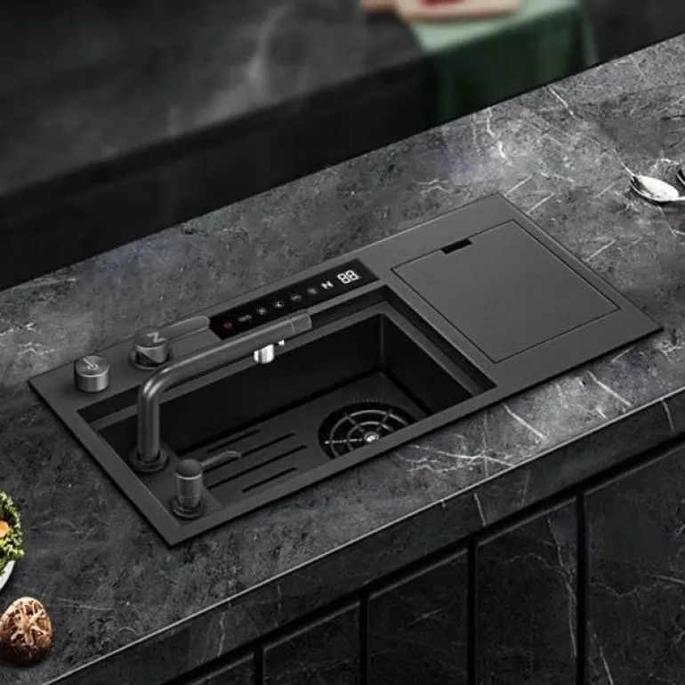 Entdecken Sie die perfekte Kombination aus Stil und Technologie mit dieser modernen Ultraschall-Edelstahlspüle. Ihr modernes Design fügt sich harmonisch in jedes Küchenambiente ein und macht sie zu einer edlen Ergänzung für Ihren kulinarischen Raum. Die innovative Ultraschalltechnologie garantiert eine effiziente und gründliche Reinigung und sorgt dafür, dass Ihre Spüle mit minimalem Aufwand makellos bleibt. Werten Sie Ihr Küchenerlebnis mit dieser durchdachten Kombination aus Eleganz und Funktionalität auf.