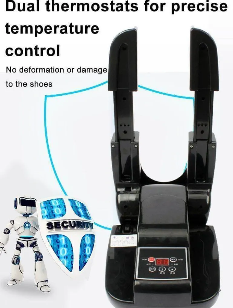 Mit dem integrierten intelligenten Timer können Sie präzise Trocknungszeiten für verschiedene Schuhtypen einstellen und so den Energieverbrauch optimieren. Dieser Schuhtrockner arbeitet mit einem konstanten Temperaturbereich von 42 bis 50 °C und trocknet Ihre Schuhe dank des Heizgebläses in nur wenigen Minuten. So erhalten Sie eine schnelle und effektive Trocknungslösung.