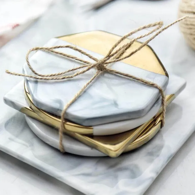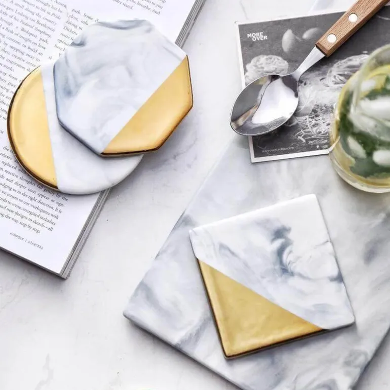 Mit den Maßen 9,3 x 9,3 x 0,7 cm oder 9,8 x 9,8 x 0,7 cm schützt es Ihre Oberflächen vor Hitze, Feuchtigkeit und Kratzern und sorgt gleichzeitig für eine stilvolle Ästhetik. Dieses robuste Stück wiegt 200 g und besticht durch sein markantes Marmorstreifen-Design, das zu verschiedenen Einrichtungsstilen passt.