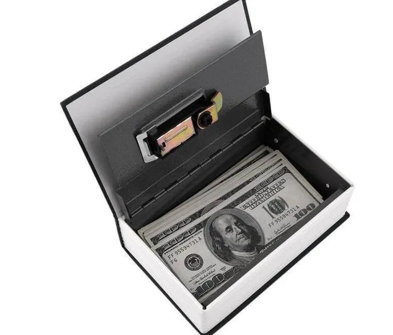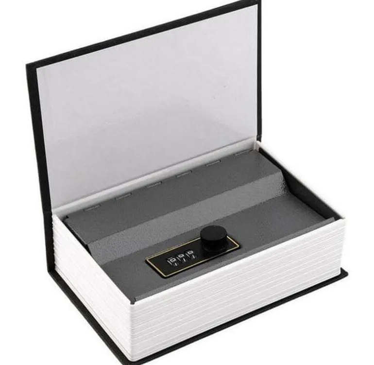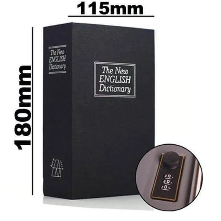Entdecken Sie die ideale Kombination aus Eleganz und Sicherheit mit dem geheimen Safe in Buchform – einer raffinierten Lösung zur Aufbewahrung Ihrer Wertsachen. Diese diskrete Geld- und Schmuckschatulle aus hochwertigem Metall und Stahl ähnelt gekonnt einem klassischen Buch und bietet ein perfektes Versteck für kleine Gegenstände wie Schmuck, Bargeld, Münzen und andere wichtige Besitztümer.