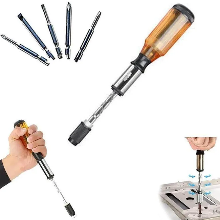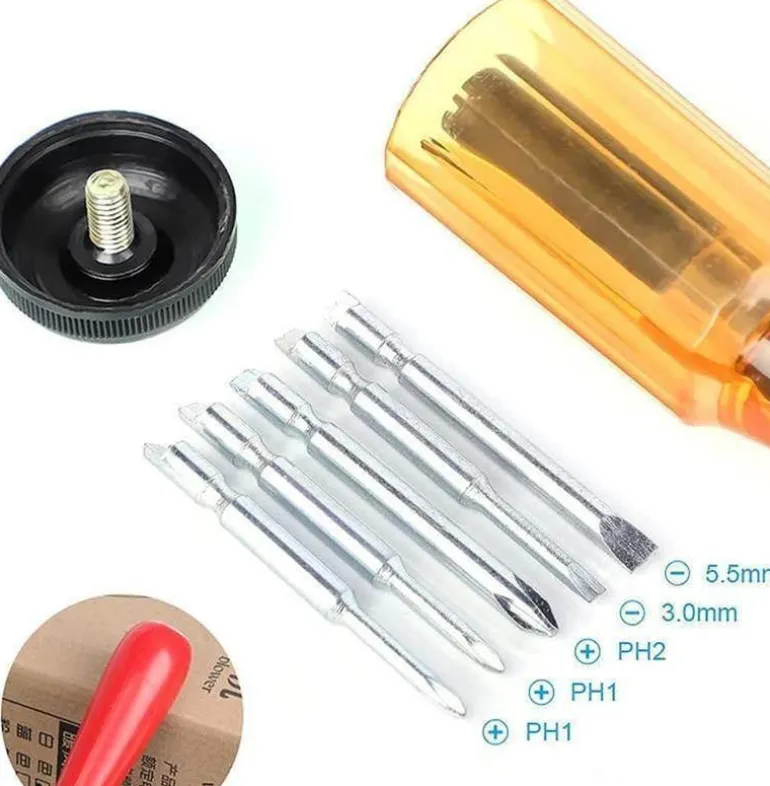 Dieses 5-in-1-Schraubendreher-Set enthält fünf austauschbare Bits, die bequem im Griff verstaut sind und so leicht zugänglich und tragbar sind. Ob für Heimwerkerprojekte, Reparaturen im Haus oder Arbeiten im Freien – dieses Schraubendreher-Set erfüllt problemlos mehrere Zwecke.
