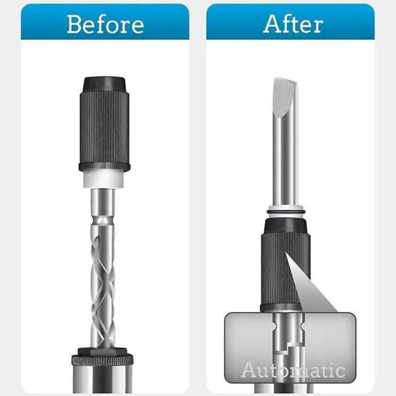 Dieser Schraubendreher lässt sich dank seines einfachen Selbstverriegelungsmechanismus leicht zerlegen und zusammenbauen. Zum Entriegeln ziehen Sie einfach die Verriegelungsschale zurück und setzen den Bit mühelos ein, um ihn zu sichern. Das halbautomatische Design verbessert die Benutzerfreundlichkeit, schont Ihr Handgelenk und ermöglicht eine komfortable Bedienung bei längerem Gebrauch.