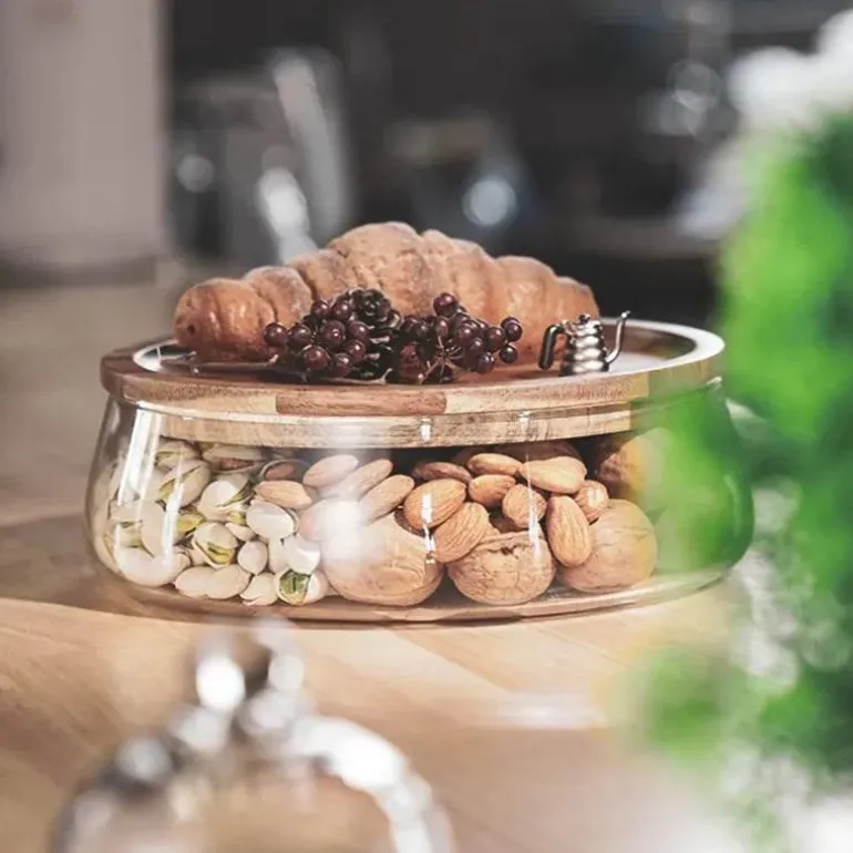 Verwandeln Sie Ihre Küchenorganisation mit unseren eleganten Vorratsbehältern aus Glas mit stilvollen Holzdeckeln. Diese Behälter aus hochwertigem Glas vereinen Funktionalität und Ästhetik und sind eine schöne Ergänzung für jede Kücheneinrichtung.
