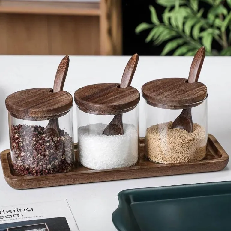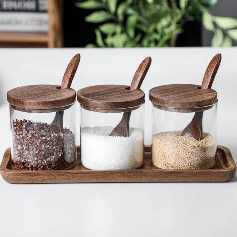 Verschönern Sie Ihre Küche oder Ihren Wohnraum mit diesem dekorativen Set aus Glasvorratsgläsern mit wunderschönem Akazienholzdeckel, der Ihrer Einrichtung einen Hauch natürlicher Wärme verleiht. Dieses vielseitige 3-teilige Set bietet nicht nur praktische Aufbewahrungsmöglichkeiten für Ihre Gewürze, sondern verleiht Ihrem Zuhause auch eine moderne, organische Ästhetik.
