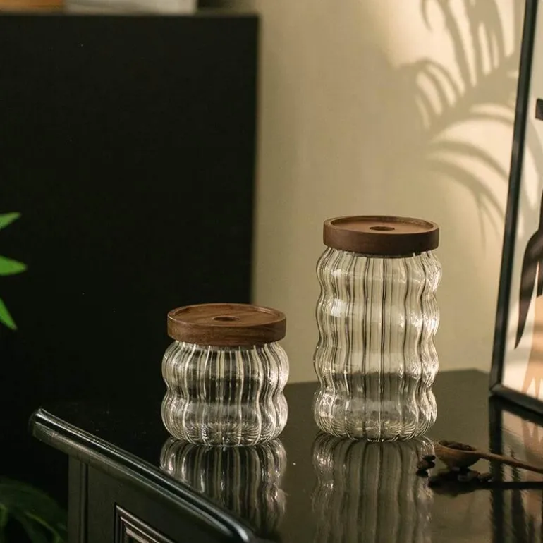 Das gewellt-gestreifte Glas-Vorratsglas vereint Stil und Funktionalität und ist eine hervorragende Ergänzung für Ihre Küche. Der dekorative Behälter besticht durch sein einzigartiges gewelltes Streifendesign aus transparentem Glas, sodass Sie den Inhalt gut erkennen können. Es eignet sich perfekt zum Ordnen verschiedener Trockenwaren und verleiht Ihrer Kücheneinrichtung gleichzeitig einen Hauch von Eleganz. Der dicht schließende Deckel sorgt dafür, dass Ihre Lebensmittel frisch bleiben und ist somit eine zuverlässige Wahl für den täglichen Gebrauch. Hergestellt aus hochwertigem Glas, schafft dieses leichte und dennoch robuste Glas die perfekte Balance zwischen Ästhetik und Funktionalität und bereichert Ihr Zuhause mit Schönheit und Nutzen.