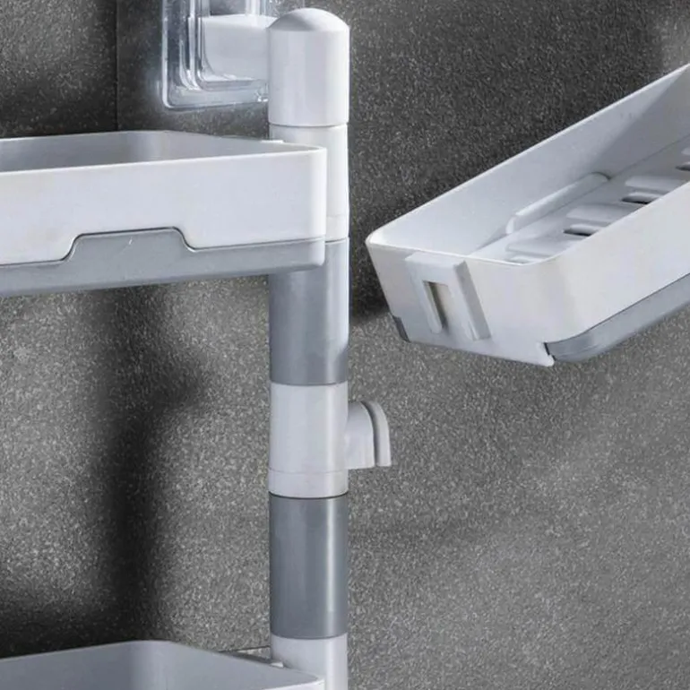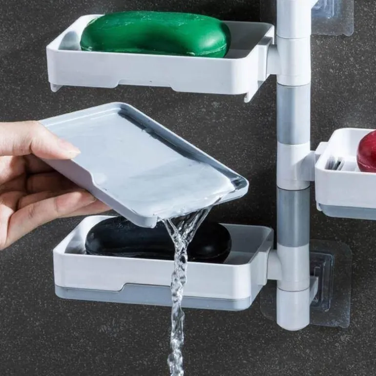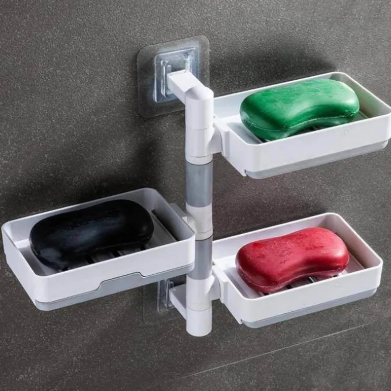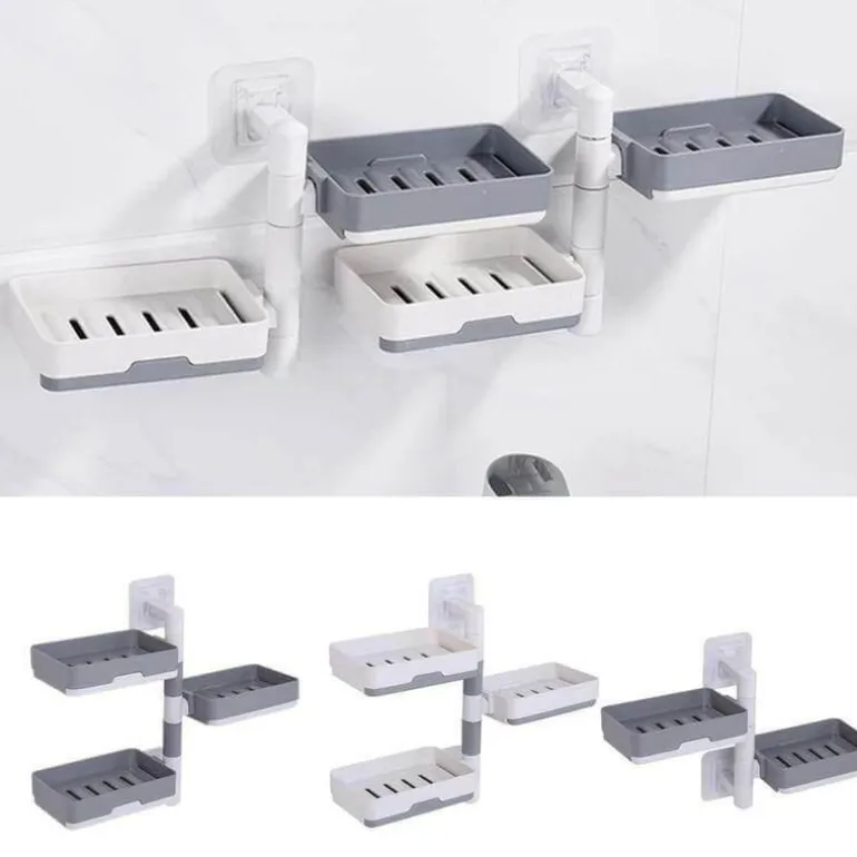 Mit zwei oder drei Ebenen eignet sich dieser Halter nicht nur für Seife, sondern auch für Kosmetika, Shampoos und Lotionen und bietet flexible Aufbewahrungsmöglichkeiten. Das um 180 Grad drehbare Design ermöglicht eine optimale Platzierung und passt sowohl in 90- als auch in 180-Grad-Wandkonfigurationen.
