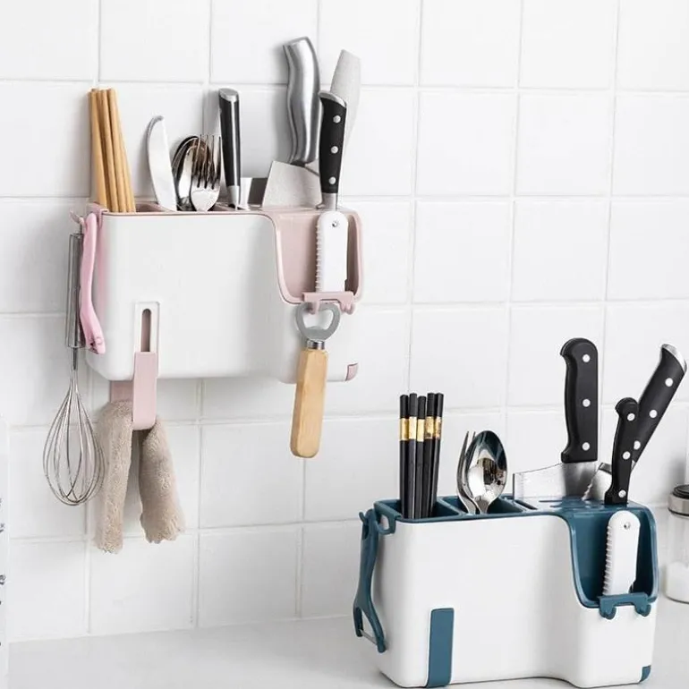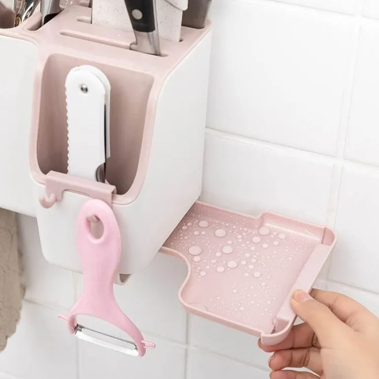 Dank seines Designs mit mehreren Fächern eignet sich dieses Gestell perfekt für die separate Aufbewahrung verschiedener Utensilien wie Löffel, Messer, Gabeln und Essstäbchen. Die Wasserschale am Boden verhindert Tropfenbildung und sorgt für eine saubere Küche, damit Ihre Arbeitsflächen trocken bleiben.