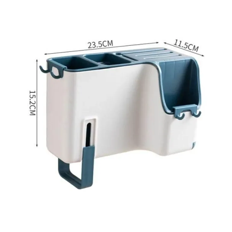 Dieses Besteckabtropfgestell aus robustem ABS-Kunststoff misst ca. 23,5 x 11,5 x 15,2 cm. Im Lieferumfang sind ein Küchenregal und ein spurloser Aufkleber für die einfache Anbringung enthalten.