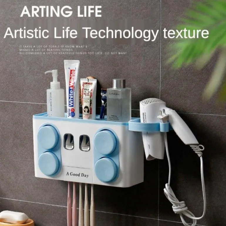 Dieses praktische Gerät bietet Platz für zwei bis vier Personen und eignet sich somit ideal für Gemeinschaftsbäder. Es verfügt über zusätzliche seitliche Haken und eine spezielle Ablage für Haartrockner, sodass Sie Ihre Pflegeutensilien übersichtlich aufbewahren können. Der automatische Zahnpastaspender und der integrierte Zahnbürstenhalter erleichtern Ihnen den Alltag und sorgen mühelos für Ordnung.
