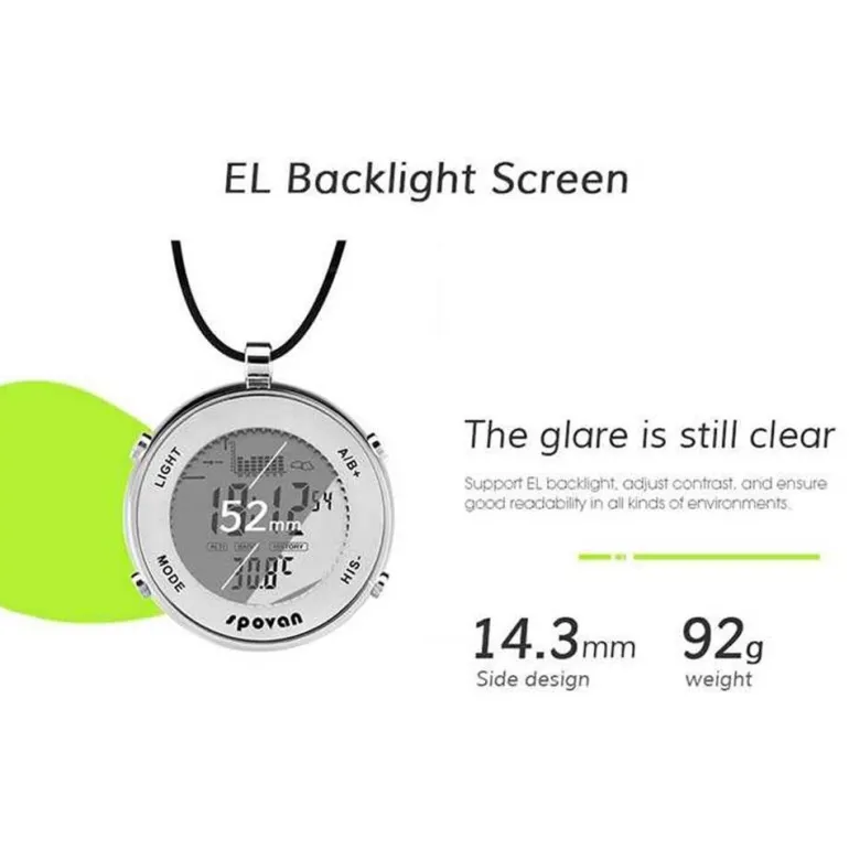 Entdecken Sie mit dieser multifunktionalen und wasserdichten Barometer-Wanderuhr den perfekten Begleiter für Ihre Outdoor-Abenteuer. Diese auf Langlebigkeit ausgelegte Uhr ist für den Einsatz in anspruchsvollsten Umgebungen konzipiert. Dank ihrer Wasserdichtigkeit hält sie Regen, Spritzwasser und sogar kurzem Untertauchen stand und ist somit die ideale Wahl für Wanderungen, Camping und verschiedene Outdoor-Aktivitäten.