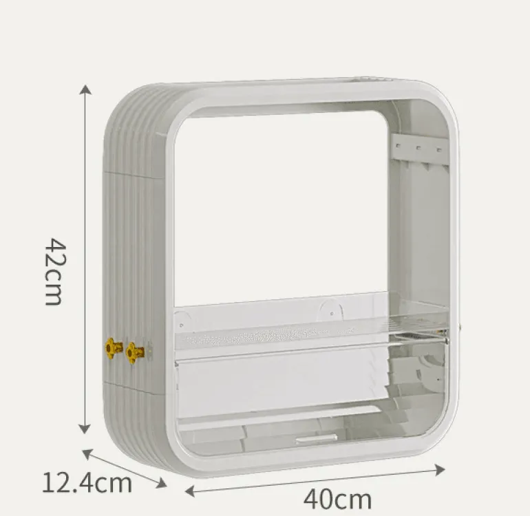 Mit dem wasserdichten Dust Shield Organizer halten Sie Ihre Badezimmerutensilien geordnet und vor Staub und Feuchtigkeit geschützt. Diese praktische Lösung aus hochwertigen, langlebigen und wasserdichten Materialien ist für die typische Luftfeuchtigkeit in Badezimmern konzipiert. Das kompakte Design bietet mit mehreren Fächern und praktischen Ablagen ausreichend Platz für alle wichtigen Utensilien wie Handtücher, Toilettenartikel und mehr.