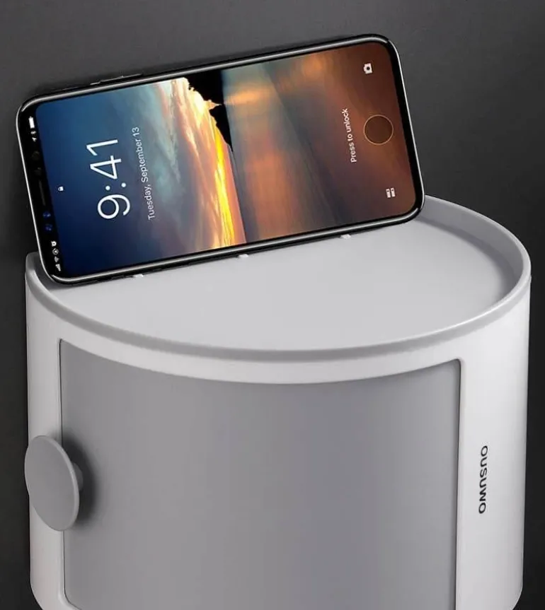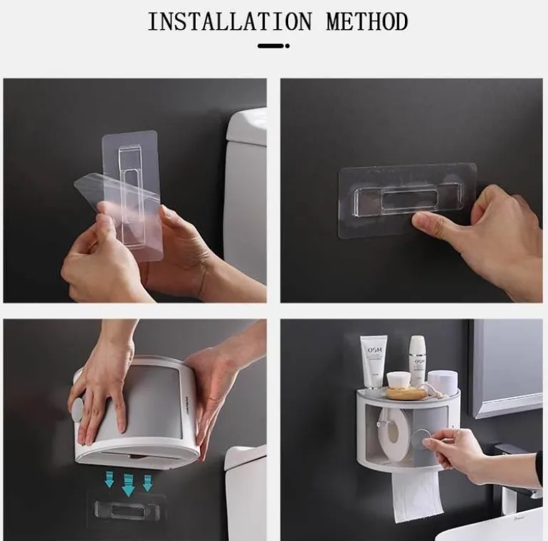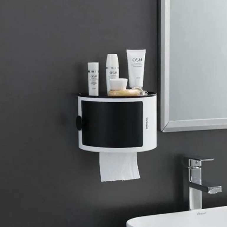 Im Paket enthalten ist ein wasserdichtes, mehrschichtiges Toilettenpapierhalterregal, das Ordnung und Eleganz in Ihr Badezimmer bringt.
