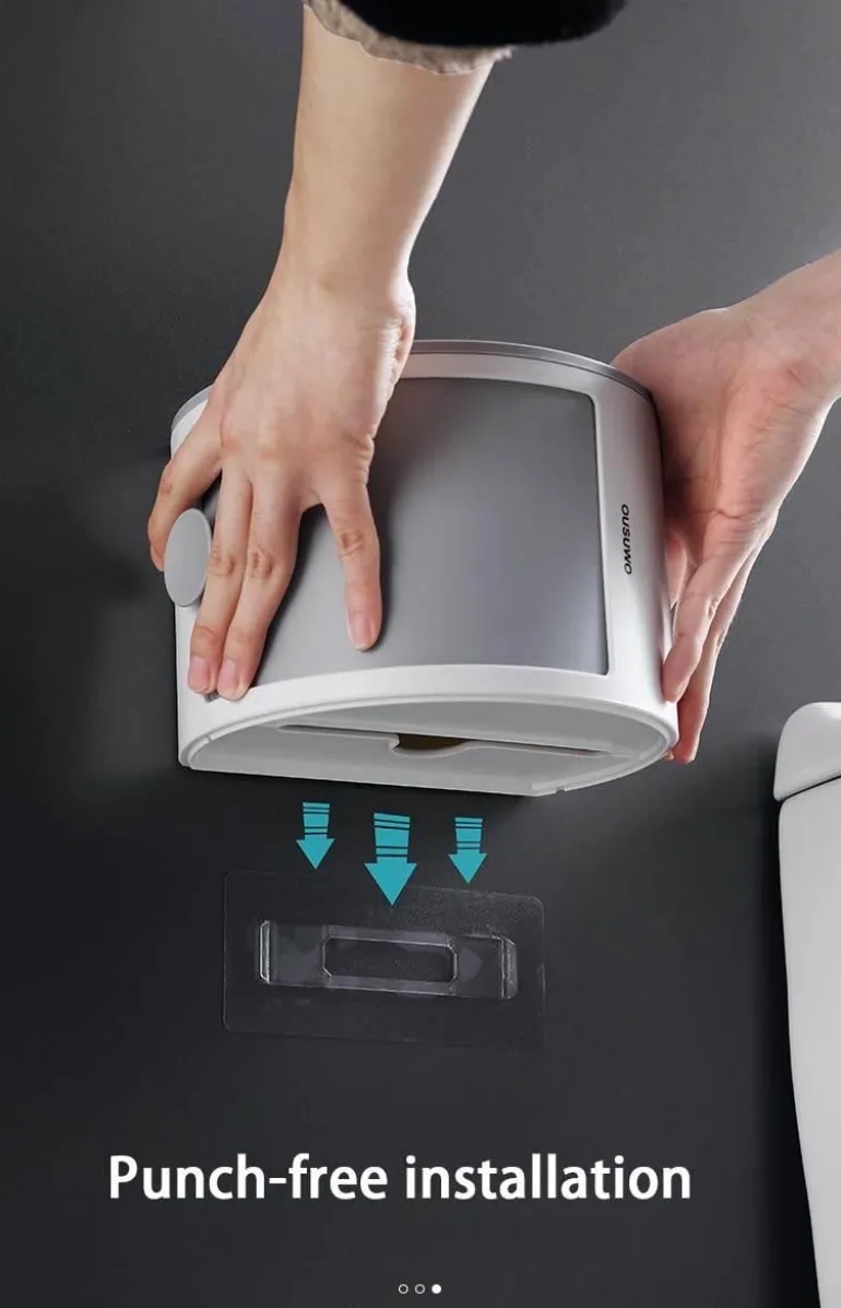 Dieser Toilettenpapierhalter mit Schiebetür hält Ihre Rollen trocken und sauber. Das benutzerfreundliche Montagesystem ermöglicht eine einfache und beschädigungsfreie Montage an jeder Wand und bietet so eine praktische Möglichkeit, den Platz im Badezimmer optimal zu nutzen.