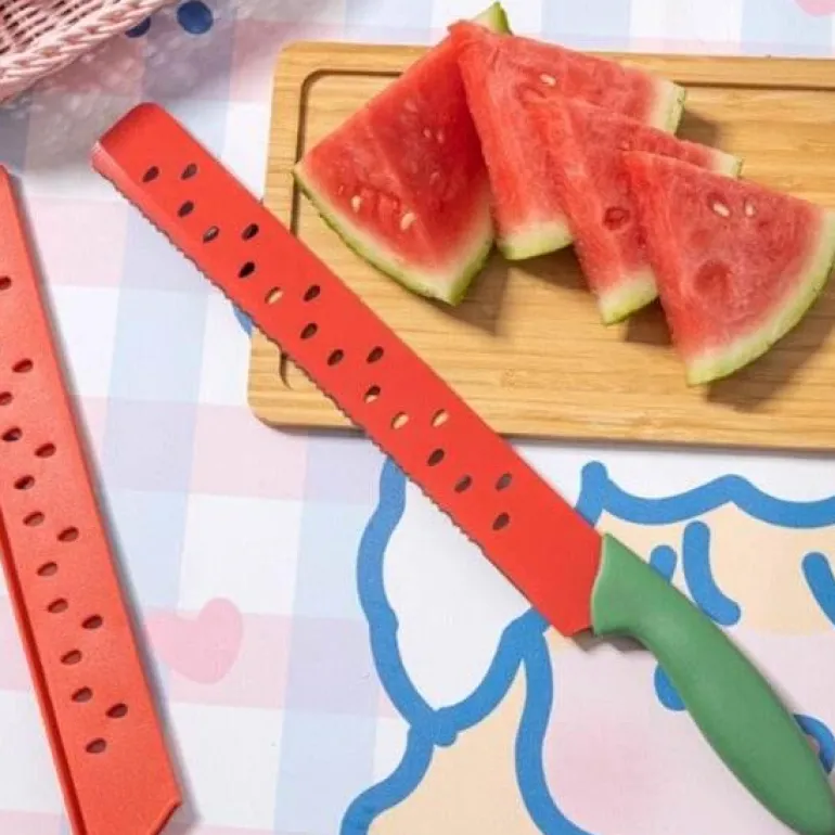 Dieses praktische Werkzeug macht das Obstschneiden nicht nur einfacher, sondern sorgt auch für mehr Komfort und Effizienz bei Ihren Küchenvorbereitungen. Genießen Sie das einfache Schneiden und Servieren frischer Wassermelonen mit minimalem Aufwand.
