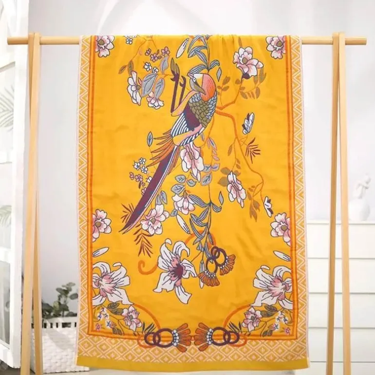 Mit seinem wunderschön gewebten, rechteckigen Design und dem floralen Garnmuster verleiht dieses Handtuch Ihrem Badezimmer einen ästhetischen Charme. Dank der effizienten Schnelltrocknungstechnologie können Sie die wohlige Umarmung des Handtuchs genießen, ohne lange auf das Trocknen warten zu müssen.