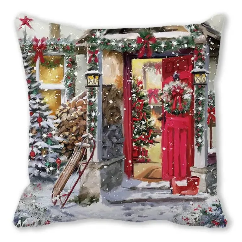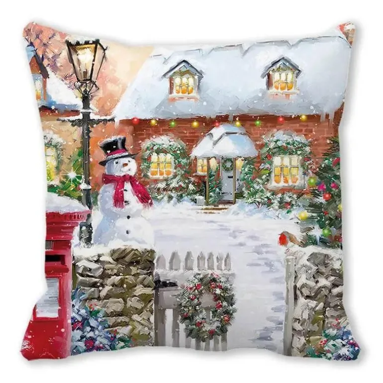 Mit seinem charmanten, szenischen Design verleiht es Ihrem Raum mühelos Eleganz und Wärme und eignet sich perfekt für Sitzkissen oder Rückenkissen. Dieser Kissenbezug soll Ihre Umgebung aufhellen und eine festliche Atmosphäre schaffen.