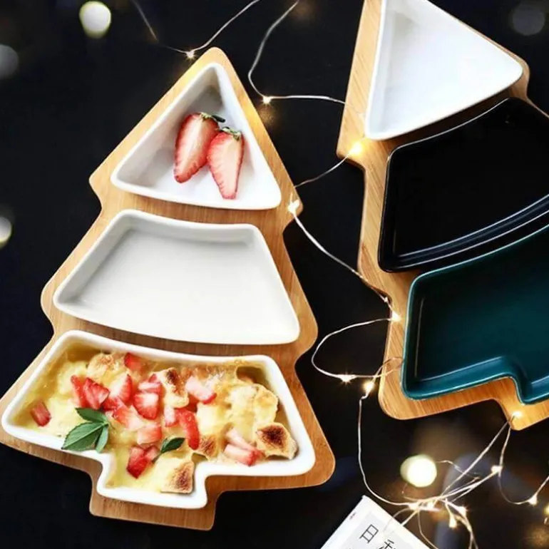 Verschönern Sie Ihre Feiertage mit unseren entzückenden Keramiktellern in Weihnachtsbaumform, perfekt ergänzt durch einen natürlichen Bambusständer. Dieses elegante Serviertablett aus hochwertiger Keramik und umweltfreundlichem Bambus vereint Kreativität mit Funktionalität.