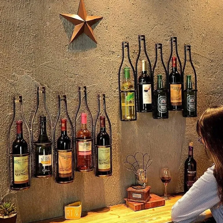 Das wandmontierte Weinregal aus Eisen ist die ideale Lösung zur Aufbewahrung und Präsentation Ihrer Weinsammlung. Mit seinem schlanken, modernen Design fügt sich dieser Weinhalter nahtlos in jedes Wohn- oder Büroambiente ein und bietet Funktionalität und Stil. Das robuste Metall sorgt dafür, dass Ihre Flaschen sicher und geschützt aufbewahrt und kunstvoll präsentiert werden. Dieses Weinregal hilft nicht nur bei der Organisation Ihrer Sammlung, sondern verwandelt Ihren Raum auch in eine elegante Ausstellung Ihrer Lieblingsweine.